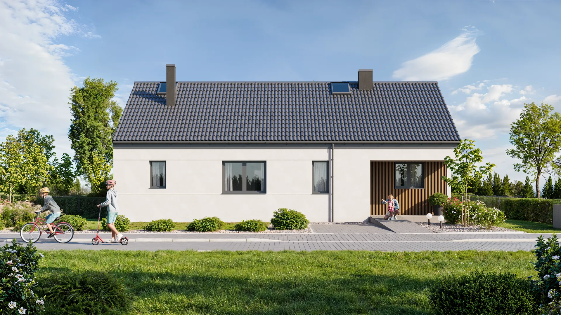 Osiedle parterowych budynków w zabudowie wolnostojącej w Nieciszowie. Zaprojektowano 4 pokojowe budynki z pomieszczeniem gospodarczym o powierzchni 85m2.