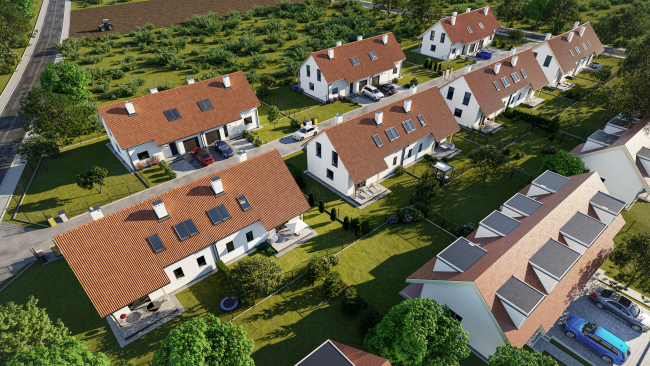 Projekt składa się z 14 budynków jednorodzinnych dwulokalowych. Każda z rodzin ma do dyspozycji pięć pokoi, usytuowanych na dwóch kondygnacjach, garaż, naziemne miejsce postojowe oraz sporych rozmiarów ogród.