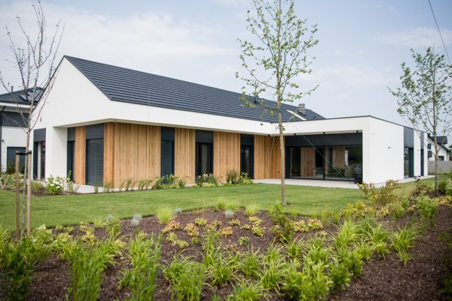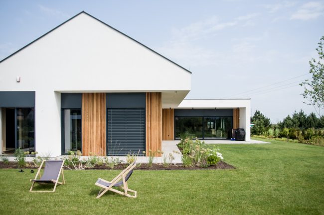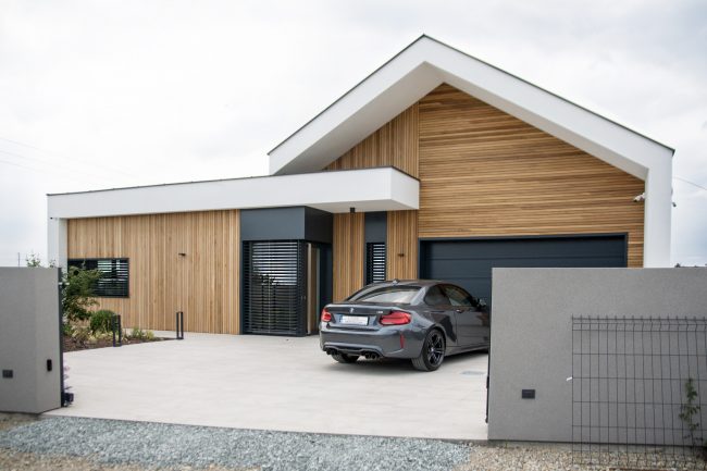 Na zdjęciach przedstawiamy zrealizowany projekt naszego autorstwa. Jest to budynek jednokondygnacyjny i jednorodzinny znajdujący się w Tyńcu Małym. Elewacja wykonana jest z naturalnego drzewa cedrowego. Posiada on wyjście na taras wraz z rozległym ogrodem. W środku znajdziemy kuchnię, jadalnię z salonem, trzy sypialnie w tym jedna z garderobą, gabinet, fitness, dwie łazienki, pralnię, antresolę oraz wbudowany garaż.