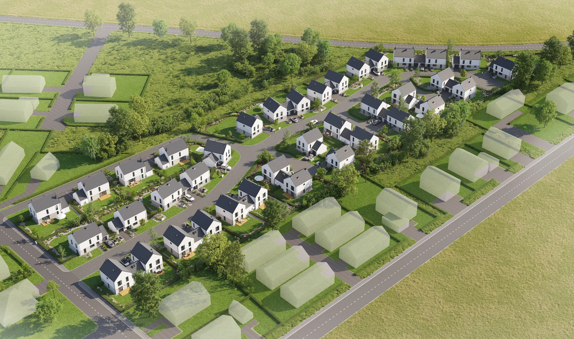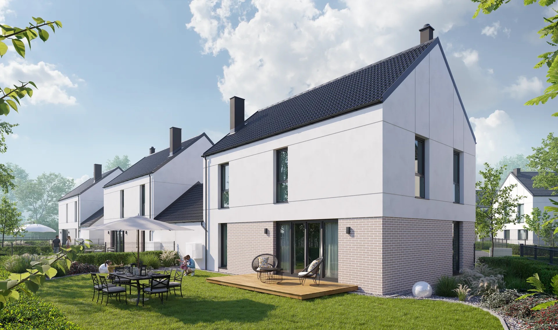 Osiedle Jednorodzinne w Tyńcu Małym zaprojektowano 38 budynków w zabudowie wolnostojącej jak i bliźniaczej.