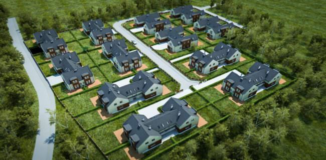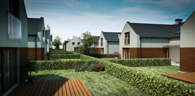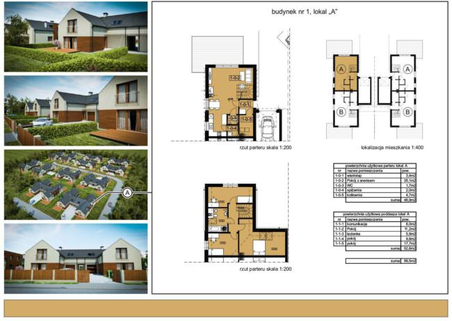 Propozycja obejmuje 12 dwulokalowych bliźniaków o jednakowym, nowoczesnym charakterze. Bryła składa się z połączenia dwóch prostych bliźniaków o dachu dwuspadowym i prostopadłym względem nich budynku garażu, również o dachu dwuspadowym. Każdy lokal ma zapewniony dostęp do terenu zielonego.