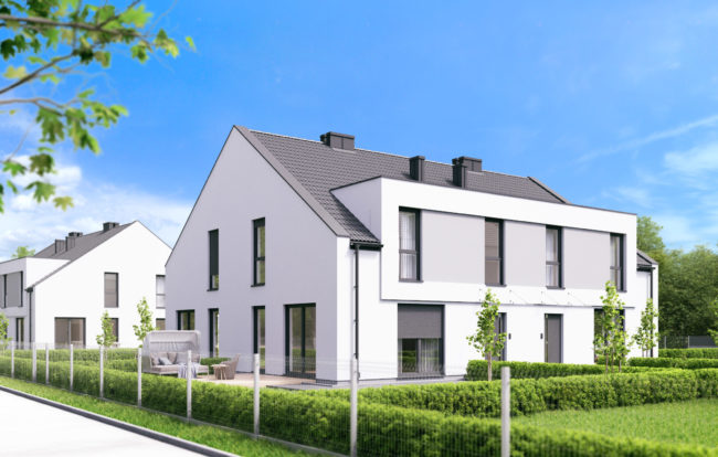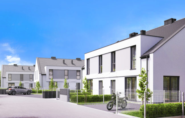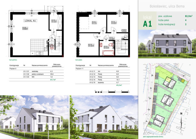 W Bolesławcu przy ulicy Bema zaprojektowaliśmy sześć budynków jednorodzinnych dwulokalowych w zabudowie bliźniaczej. Każde z mieszkań posiada osobne wejście, miejsce postojowe oraz duży teren zielony. Strefa dzienna znajdująca się na parterze składa się z wiatrołapu, pokoju z aneksem oraz WC. Piętro to strefa nocna, która posiada trzy pokoje sypialniane oraz wygodną łazienkę.