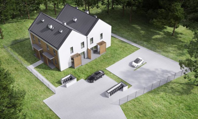 Przy ul. Miłosza w Bolesławcu, na pięknie położonej działce, zaprojektowaliśmy zespół czterech lokali mieszkalnych. Zabudowę zaplanowano w taki sposób, aby zapewnić komfortowe warunki życia dla czterech rodzin. Każdy z wydzielonych lokali mieszkalnych o powierzchni około 95 m² posiada odrębne wejście, system grzewczy, taras oraz wydzielony teren pod ogród.